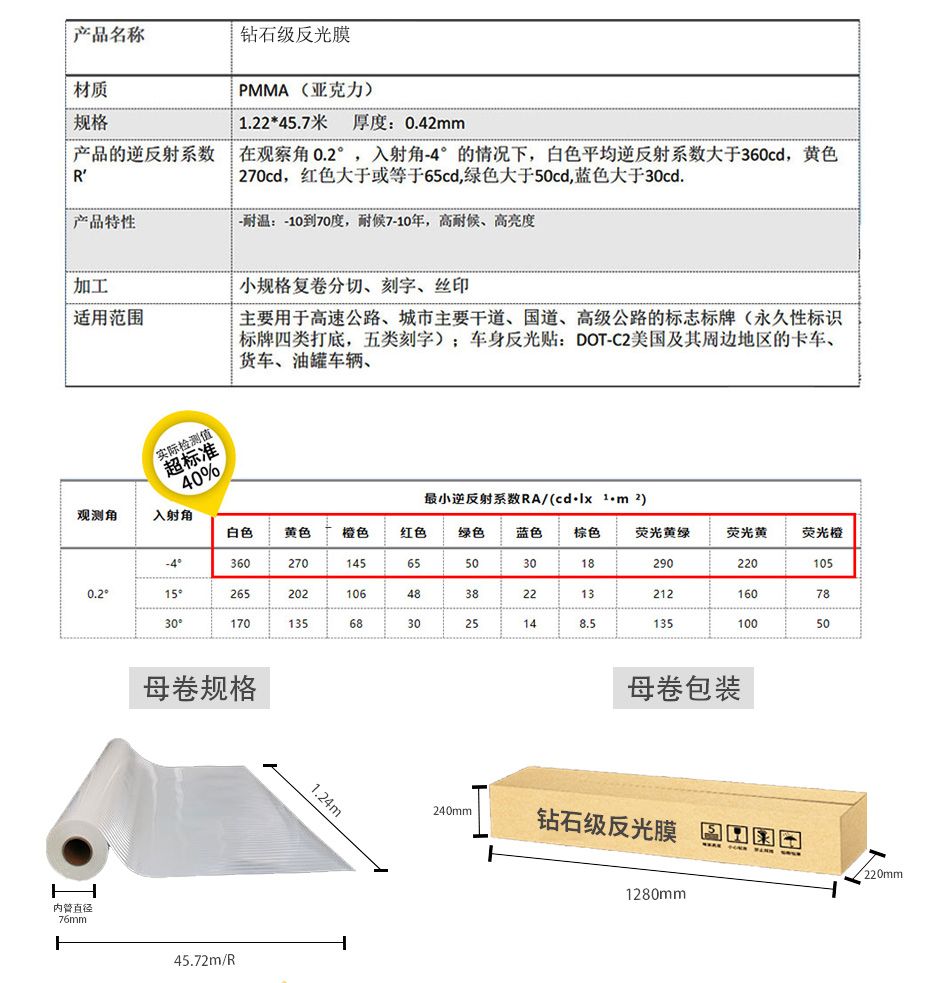 【產品類別】新國標五類(鉆石級反光膜)